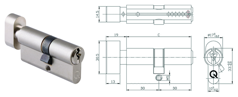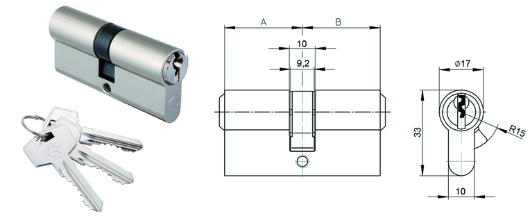- wkładki dwustronne - na obu końcach znajduje się otwór na klucz. Najlepiej sprawdzają się montowane w drzwiach wewnątrz domu lub w dolnym zamku drzwi wejściowych.