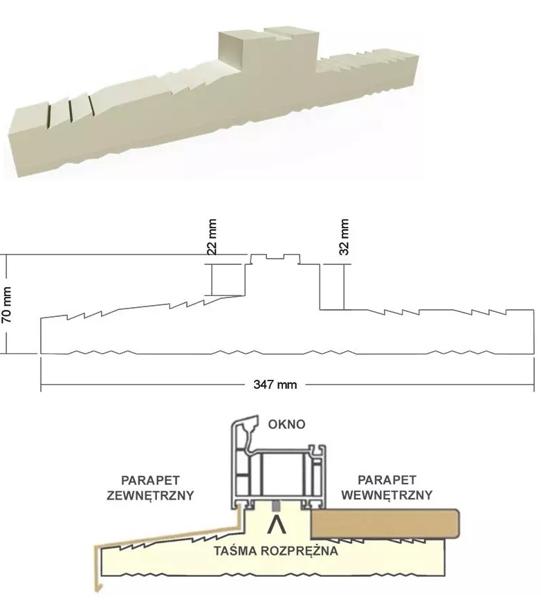 Ciepły parapet XPS uniwersalny 1,25 m