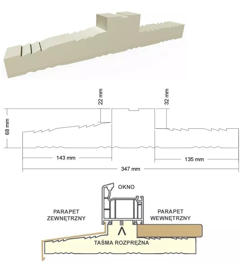 Ciepły parapet XPS uniwersalny 1,25 m
