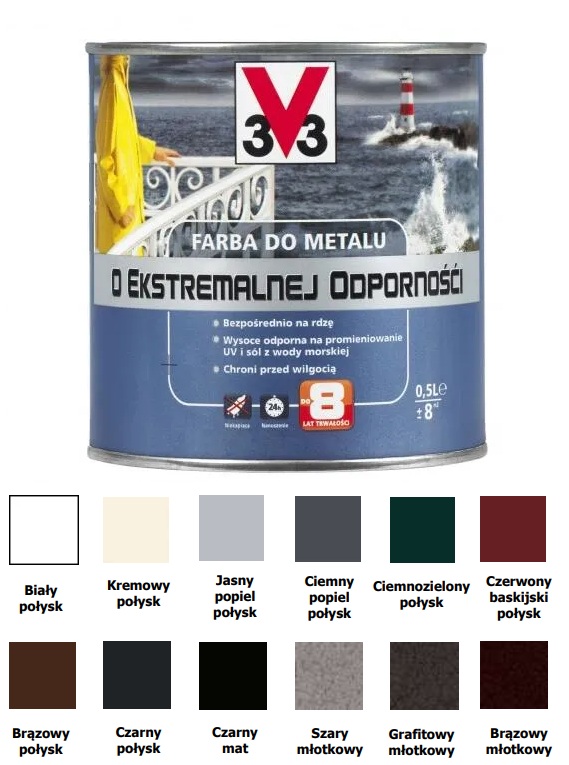 Farba do metalu o ekstremalnej odporności 0,5L V33 Czarny połysk