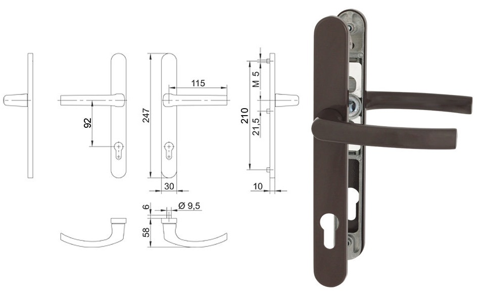 Klamka drzwiowa 35A/2200 na szyldzie PZ92 mm