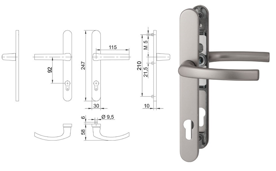 Klamka drzwiowa 35A/2200 na szyldzie PZ92 mm