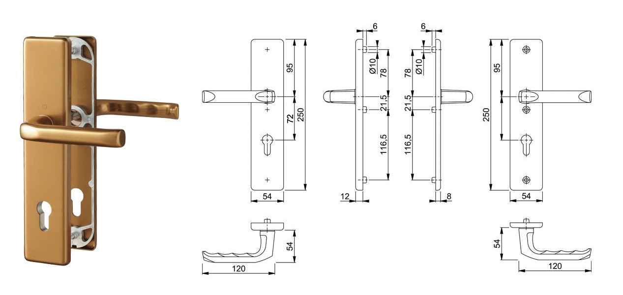 Klamka drzwiowa London z gałką 78G na szyldzie PZ