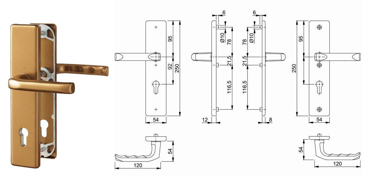 Klamka drzwiowa London z gałką 78G na szyldzie PZ