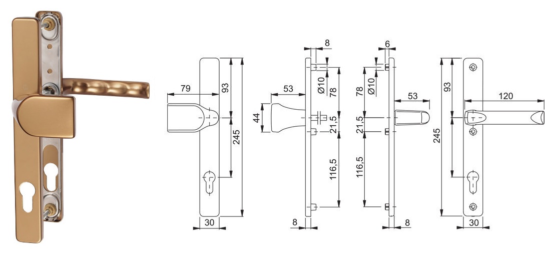 Klamka drzwiowa London z gałką 78G na szyldzie PZ