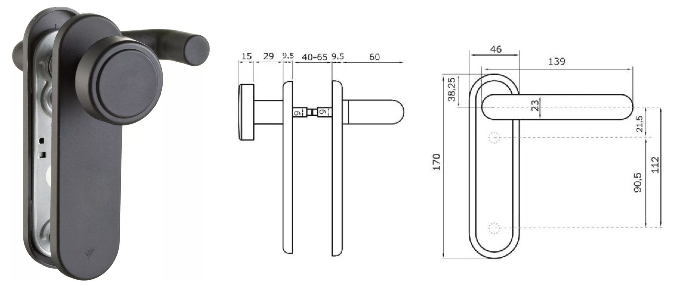 KLAMKO-GAŁKA BEZ OTWORU 45x170 mm, PPOŻ.