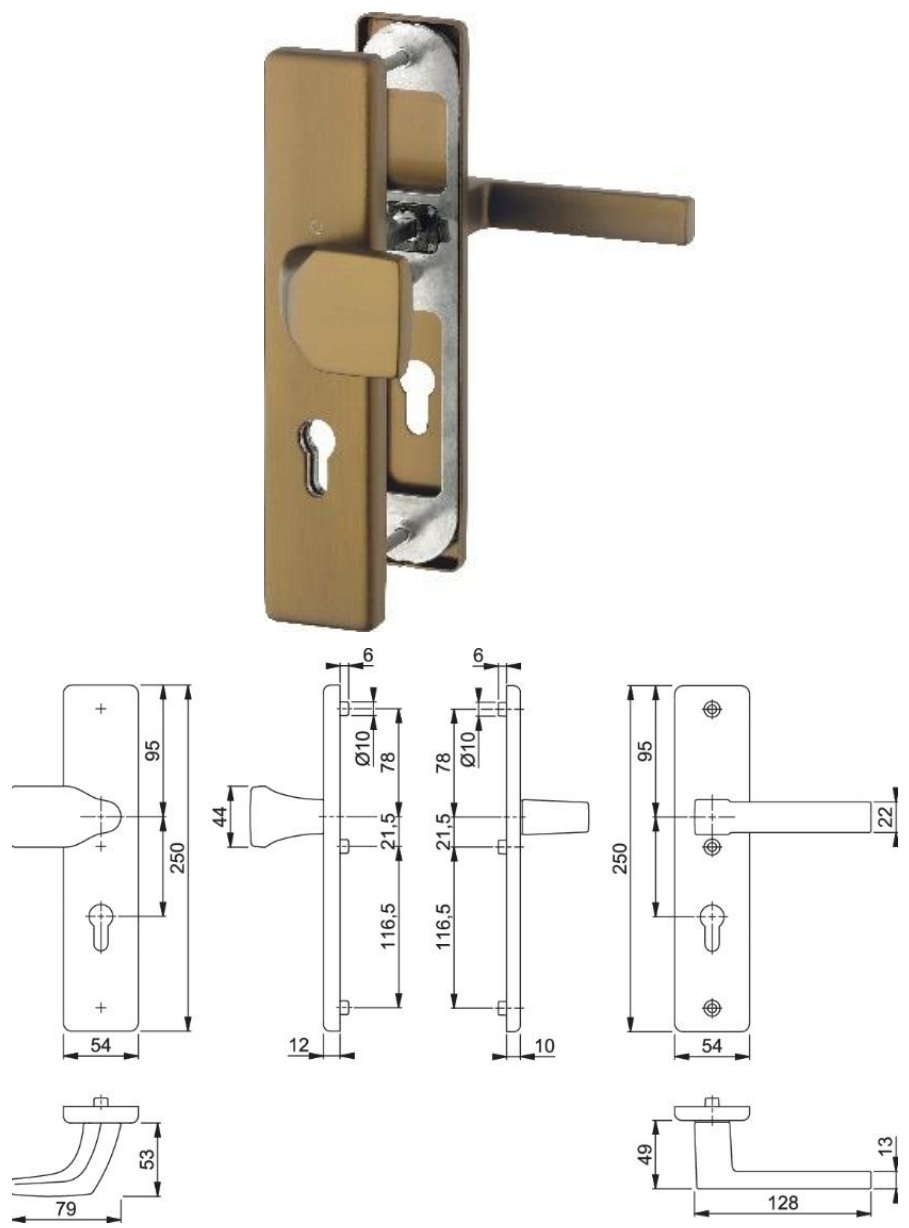 Klamka drzwiowa London z gałką 78G na szyldzie PZ