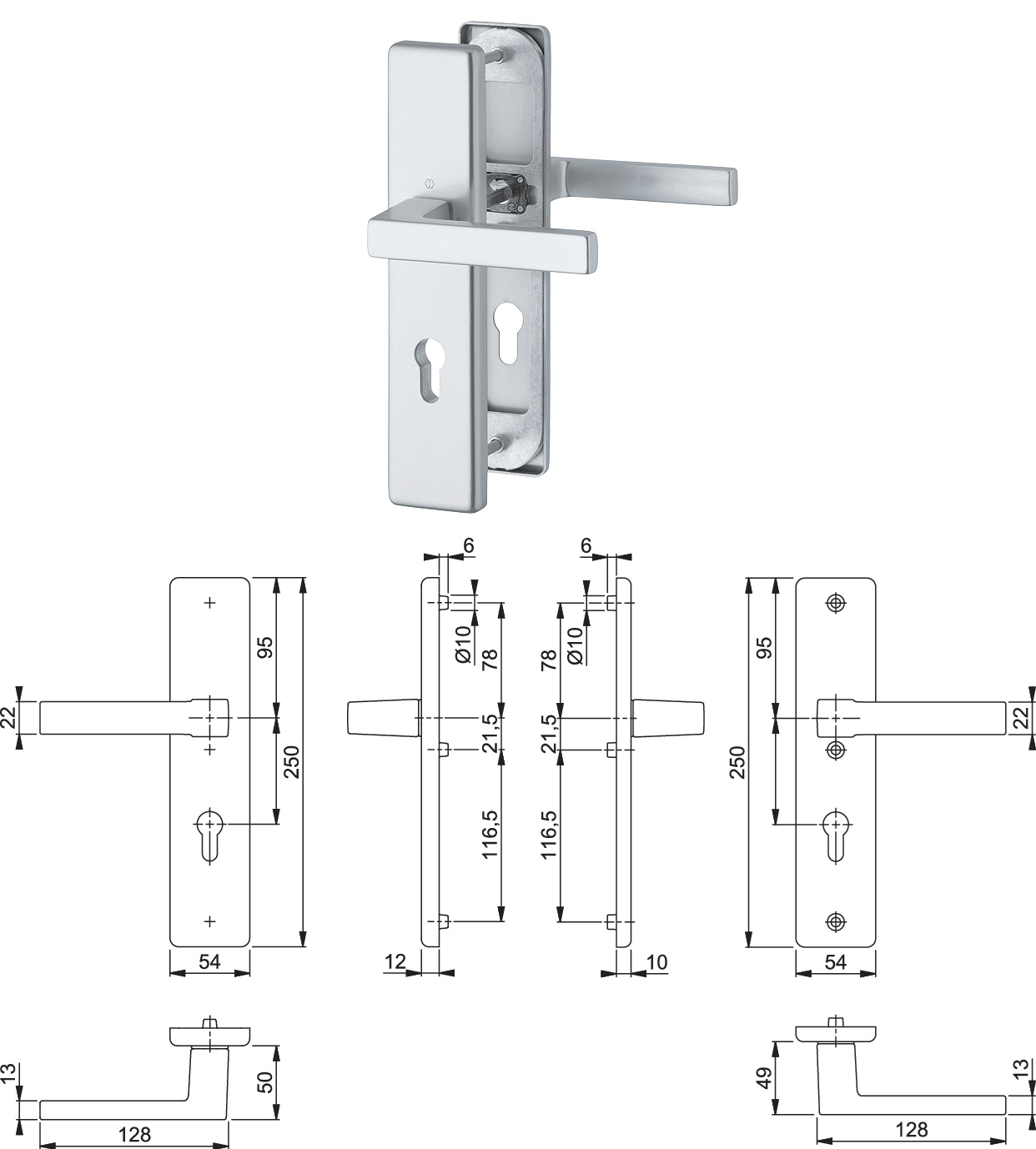 Klamka drzwiowa London z gałką 78G na szyldzie PZ