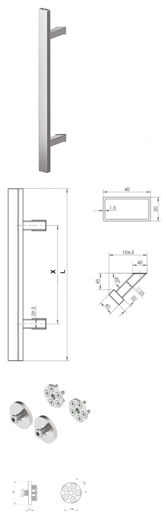 Pochwyt jednostronny Q45RX/Q10 aluminiowy, 40x20 mm, 600/800 mm + Mocowanie pochwytu za pomocą blaszki do profili ALU