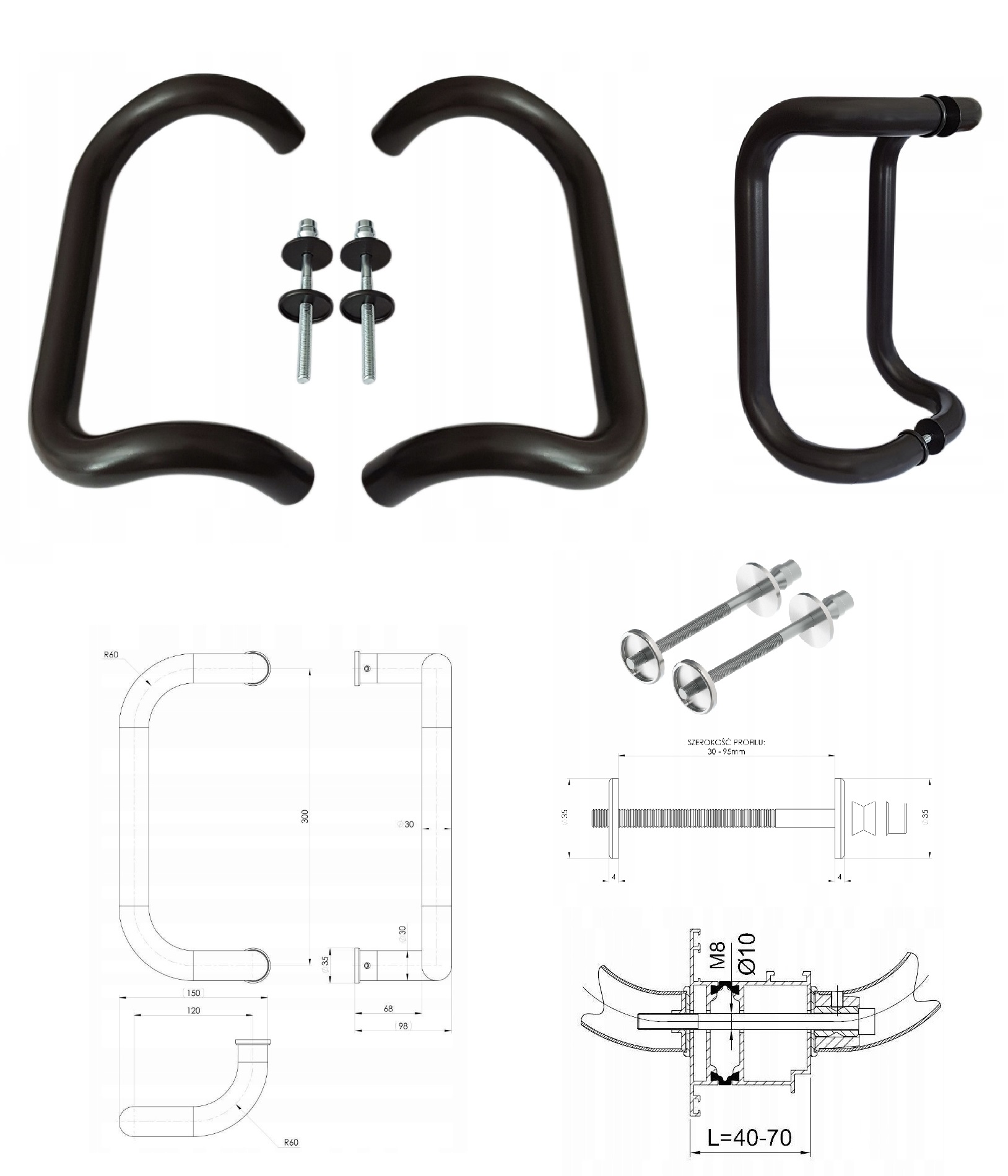 Pochwyt jednostronny Q45RX/Q10 aluminiowy, 40x20 mm, 600/800 mm + Mocowanie pochwytu za pomocą blaszki do profili PCV