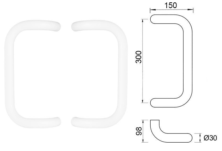 Pochwyt obustronny Q45RX/Q10 aluminiowy lakier, 40x20 mm, 1300/1800 mm