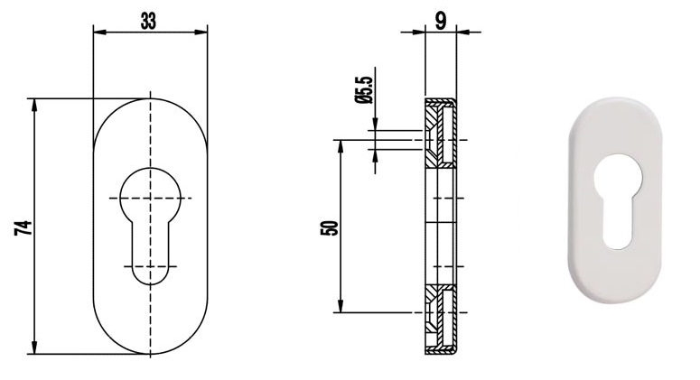 Rozeta drzwiowa PZ prostokątna 9 mm