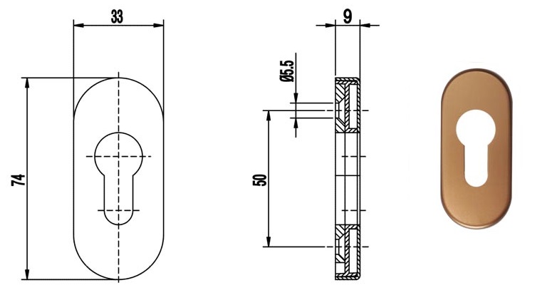 Rozeta drzwiowa z osłoną wkładki PZ 15 mm owalna