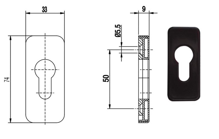 Rozeta drzwiowa PZ prostokątna 9 mm