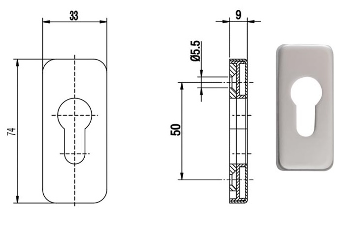 Rozeta drzwiowa PZ prostokątna 9 mm