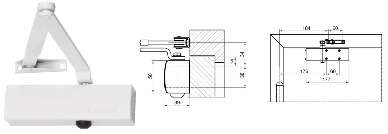 Samozamykacz drzwiowy TS1500 z ramieniem standardowym