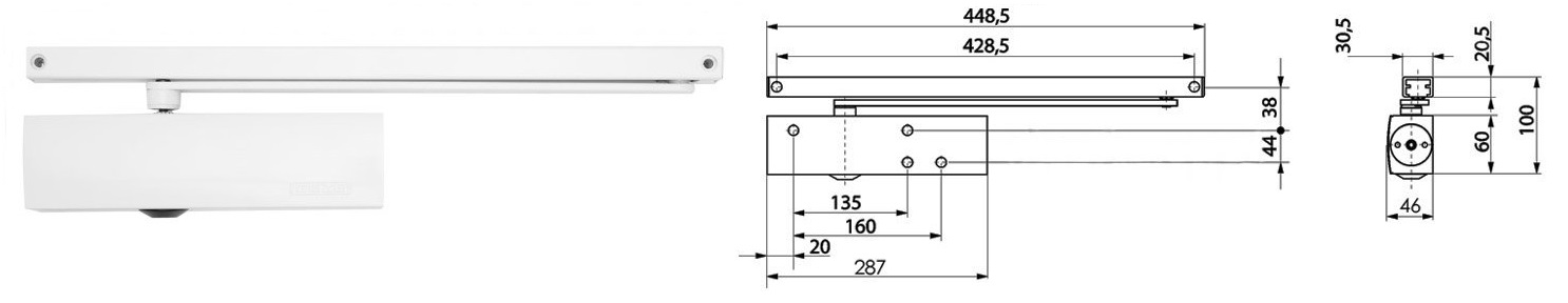 Samozamykacz drzwiowy TS1500 z ramieniem standardowym