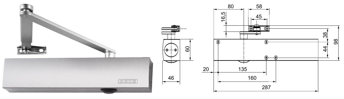 Samozamykacz drzwiowy TS1500 z ramieniem standardowym