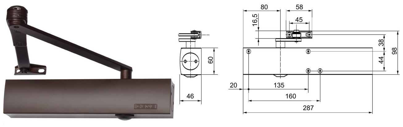 Samozamykacz drzwiowy TS1500 z ramieniem standardowym
