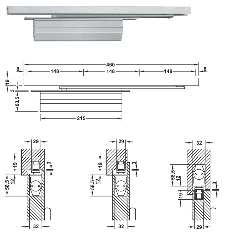 Samozamykacz niewidoczny DCL35 bez blokady otwarcia
