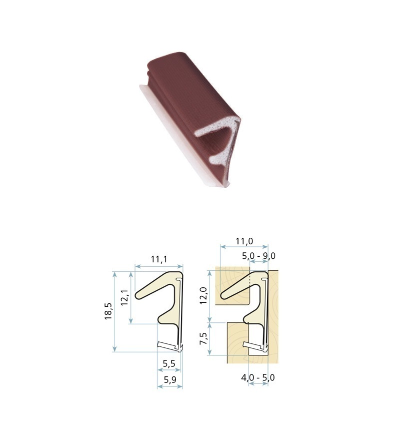 Uszczelka przymykowa DX 1362 do ruchomego słupka brąz 25m