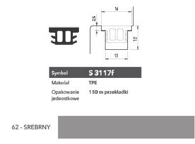 Uszczelka okienna przylgniowa S3117f – 100 m Deventer Srebrny