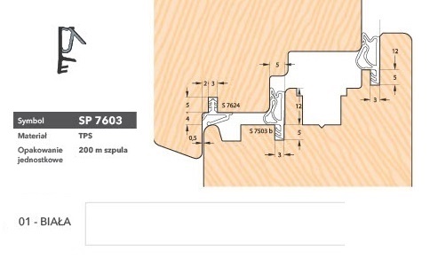Uszczelka okienna SP7603 przylgowa wykonana ze spienionego TPS termoplastycznego elastomeru, który zapewnia dobry kontakt z powierzchniami pokrytymi farbami i lakierami akrylowymi, wodorozcieńczalnymi, alkidowymi, poliuretanowymi i epoksydowymi. Uszczelka wykazuje doskonałe własności fizyczne w zakresie temperatur od - 40 do + 1800 C; chroni przed utratą ciepła i przenikaniem dźwięku, charakteryzuje się dobrą pamięcią kształtu pierwotnego przy obciążeniu statycznym. Zastosowanie do okien drewnianych.