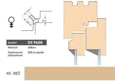 Uszczelka do renowacji DS9608 wykonana z silikonu, odporna na kontakt z farbami akrylowymi i wodorozcieńczalnymi, alkidowymi, rozpuszczalnikowymi i poliuretanowymi nie występuje tzw. efekt lepienia powierzchni. Uszczelka wykazuje doskonałe własności fizyczne w zakresie temperatur od - 60 do + 2500 C; chroni przed utratą ciepła i przenikaniem dźwięku, charakteryzuje się dobrą pamięcią kształtu pierwotnego przy obciążeniu statycznym. Zastosowanie do renowacji.