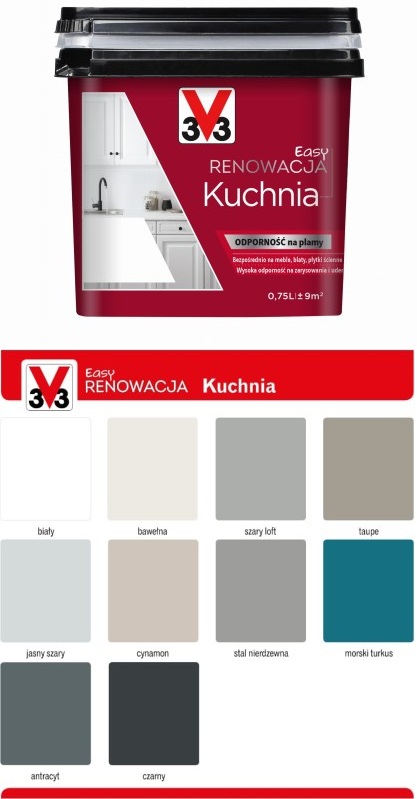 - Farba przeznaczona do renowacji różnych powierzchni w kuchni: