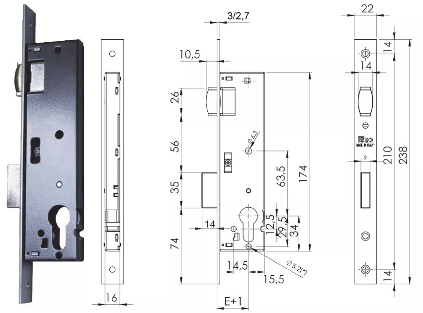 ZAMEK 85WB, E=25mm, 238x22x3mm