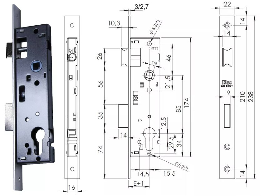 ZAMEK 85WB, E=25mm, 238x22x3mm