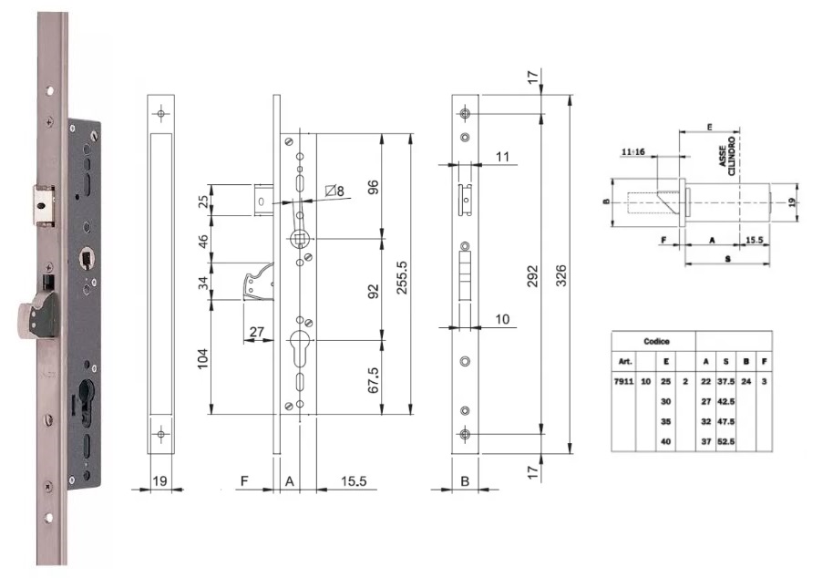 ZAMEK 85WB, E=25mm, 238x22x3mm