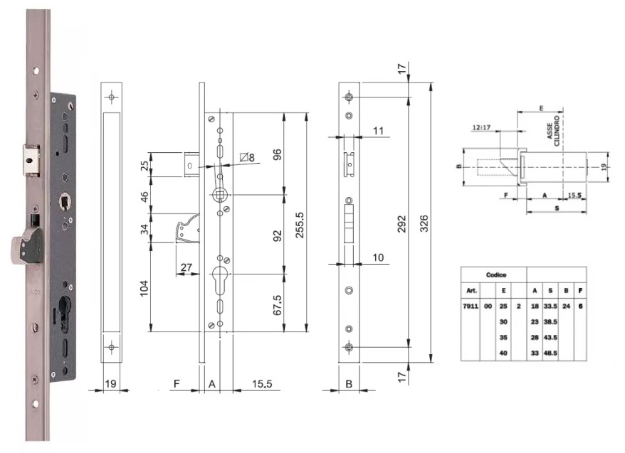 ZAMEK 85WB, E=25mm, 238x22x3mm