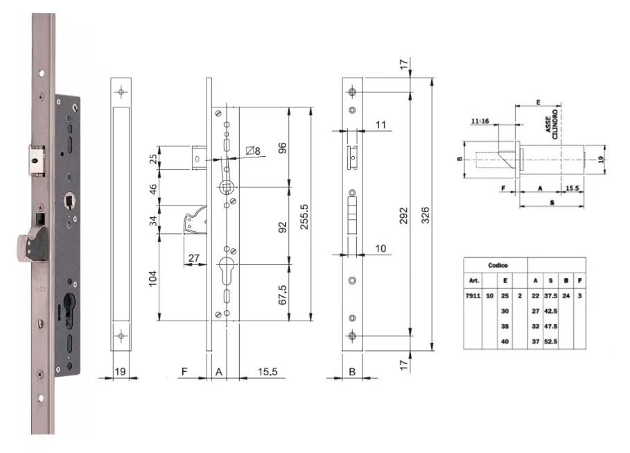 ZAMEK 85WB, E=25mm, 238x22x3mm