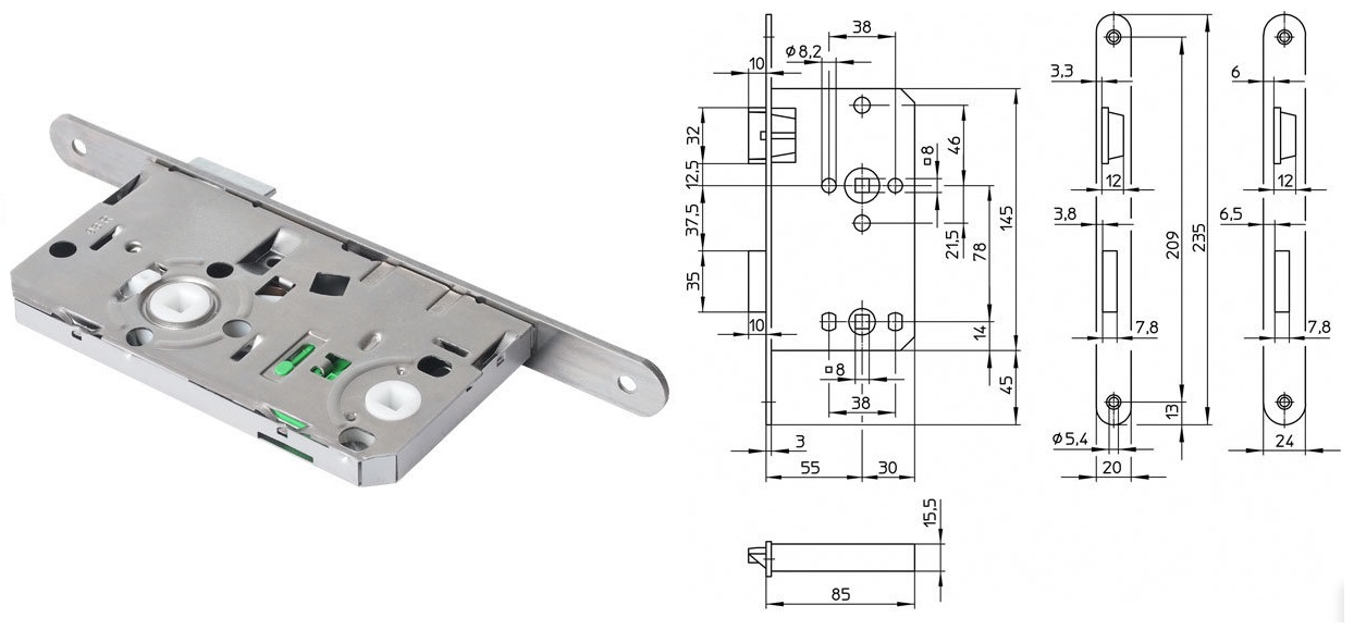 Zamek do drzwi 1120 20/55/78/8 WC lewy