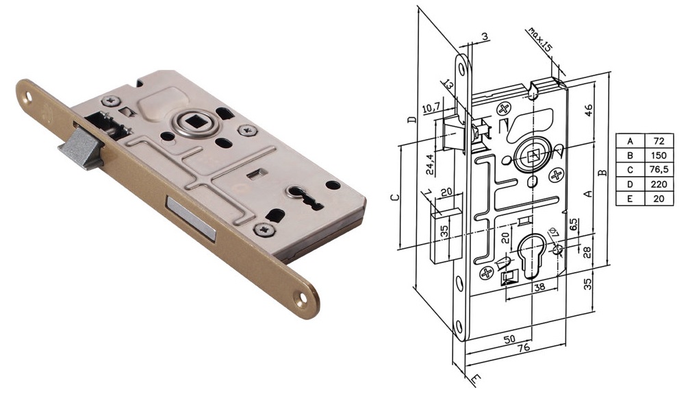 Zamek do drzwi wewnętrznych Economic BB