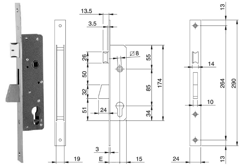 ZAMEK ELECTA 85WB, E=25mm, 290x24x3mm