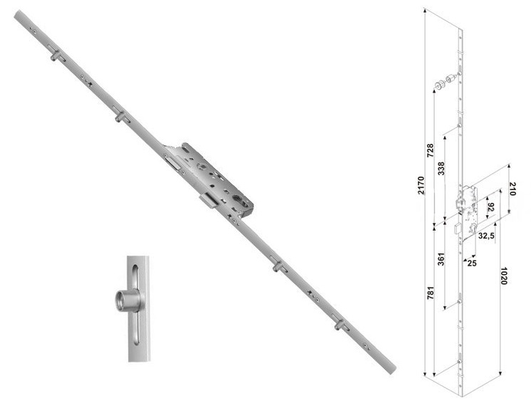 Zasuwnica drzwiowa 855GL 16/55/92/8 sterowana wkładką – bolce