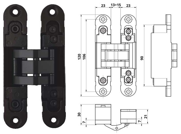 ZAWIAS WPUSZCZANY INVISACTA 310 3-D 120 KG (4 NASADKI)