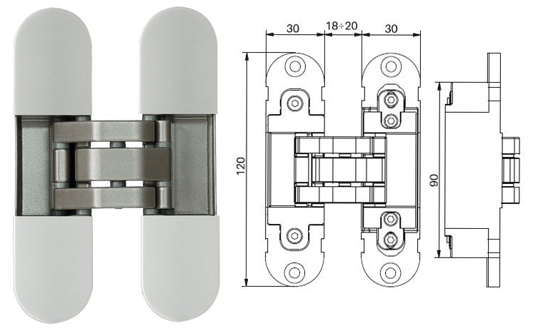ZAWIAS WPUSZCZANY INVISACTA 570 3-D 60 KG (4 NASADKI PRZYKRĘCANE)