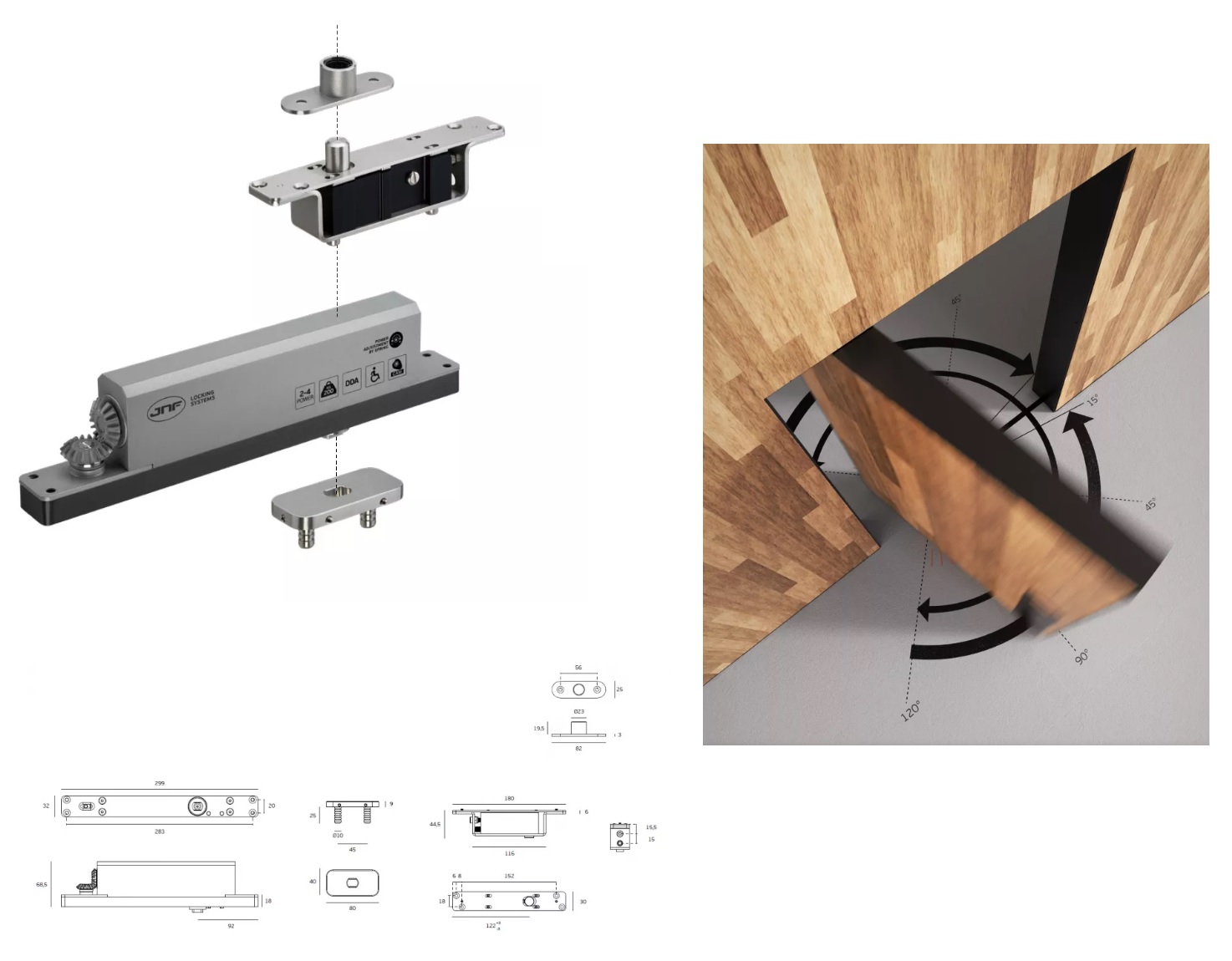 ZAWIAS HYDRAULICZNY PIVOT 200 PLUS, DO 200 kg, BLOKADA OTWARCIA