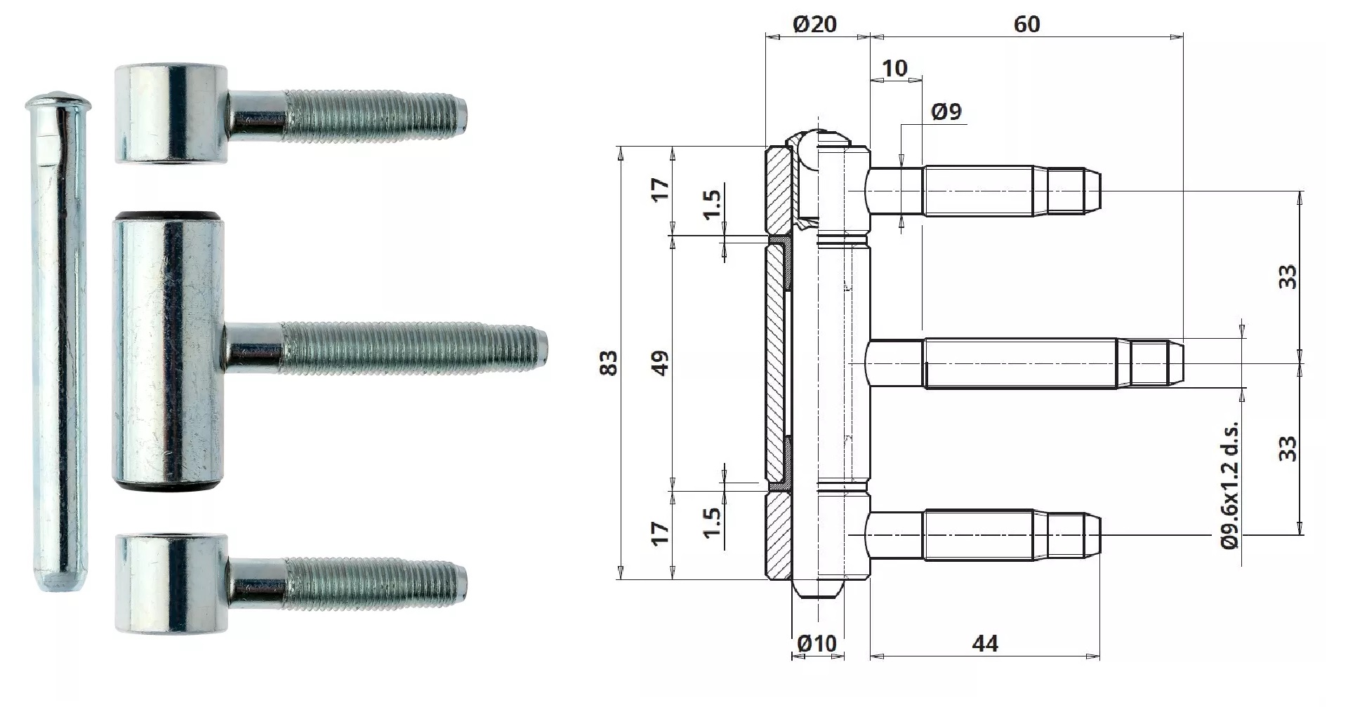 GÓRNA CZĘŚĆ ZAWIASU OT 100 150 M8x50mm 35 szt.
