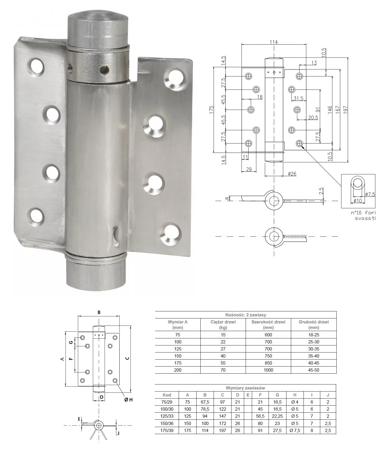 ZAWIAS HYDRAULICZNY PIVOT 200 PLUS, DO 200 kg, BLOKADA OTWARCIA