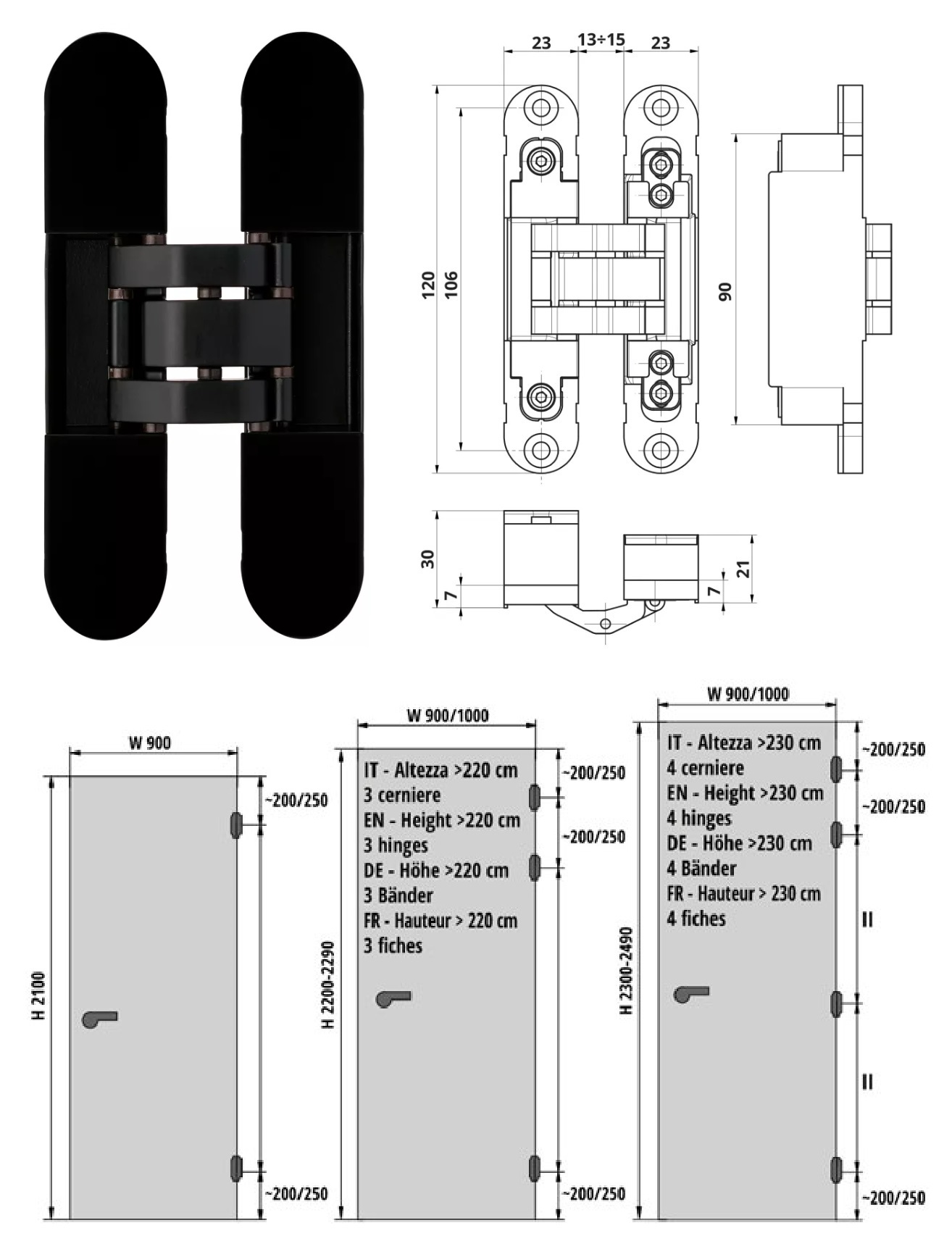 ZAWIAS WPUSZCZANY INVISACTA 310 3-D 120 KG (4 NASADKI)
