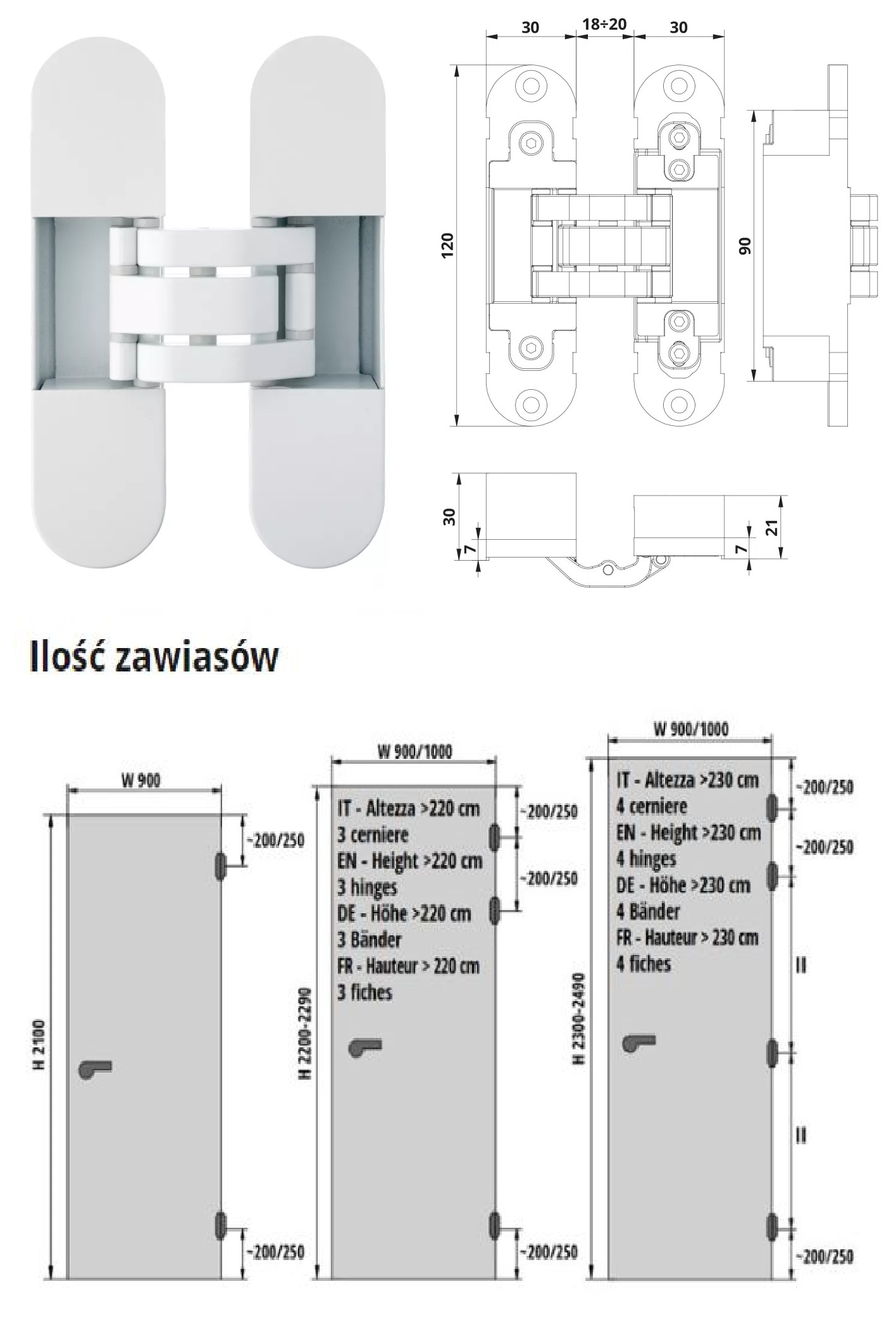 ZAWIAS WPUSZCZANY INVISACTA 310 3-D 120 KG (4 NASADKI)