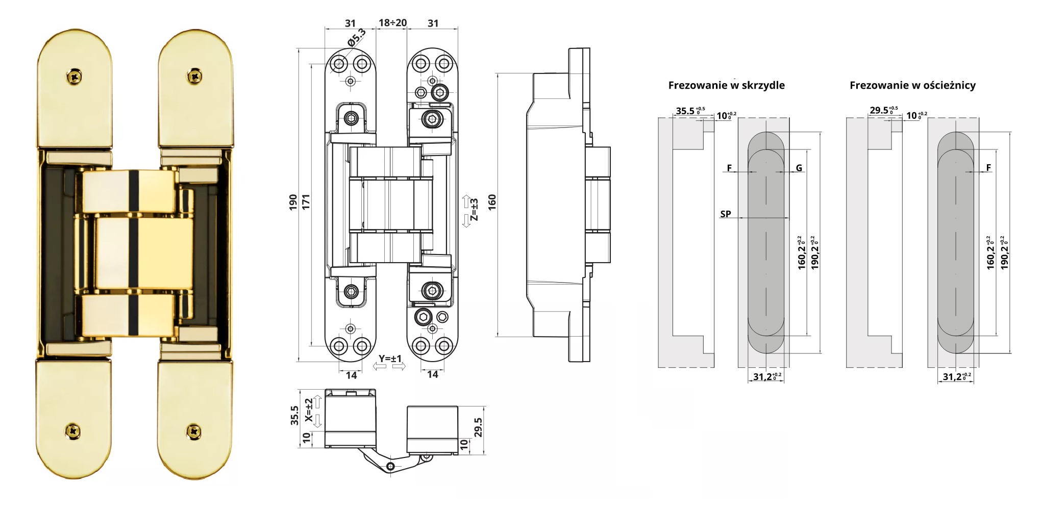 ZAWIAS WPUSZCZANY INVISACTA 310 3-D 120 KG (4 NASADKI)