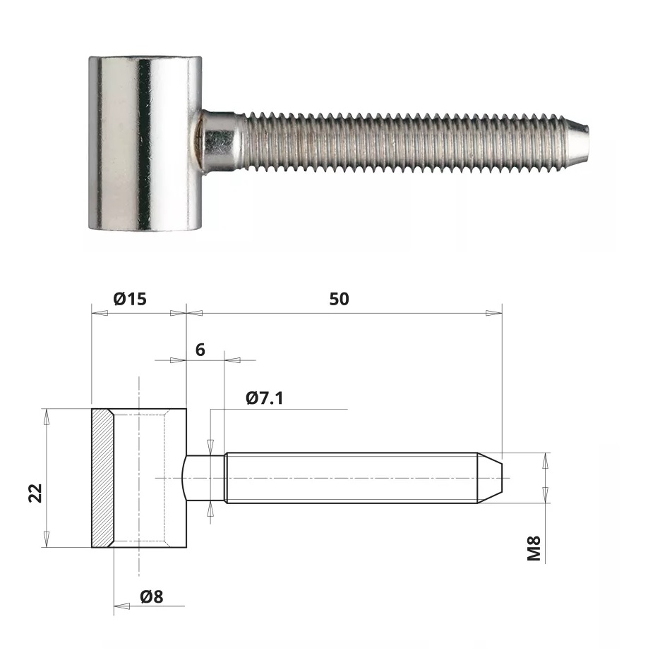GÓRNA CZĘŚĆ ZAWIASU OT 100 150 M8x50mm 30 szt.