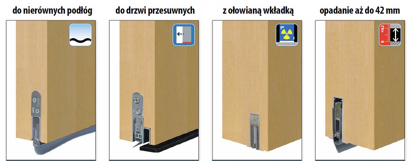 Uszczelki opadające do drzwi są wykonane z elastycznego materiału, który jest mocowany do dolnej części drzwi. Dzięki temu, gdy drzwi są zamknięte, uszczelka odkształca się i tworzy szczelny zamknięty obszar. Zapobiega to przedostawaniu się zimnego powietrza w zimie, a także kurzu, hałasu i owadów przez cały rok.